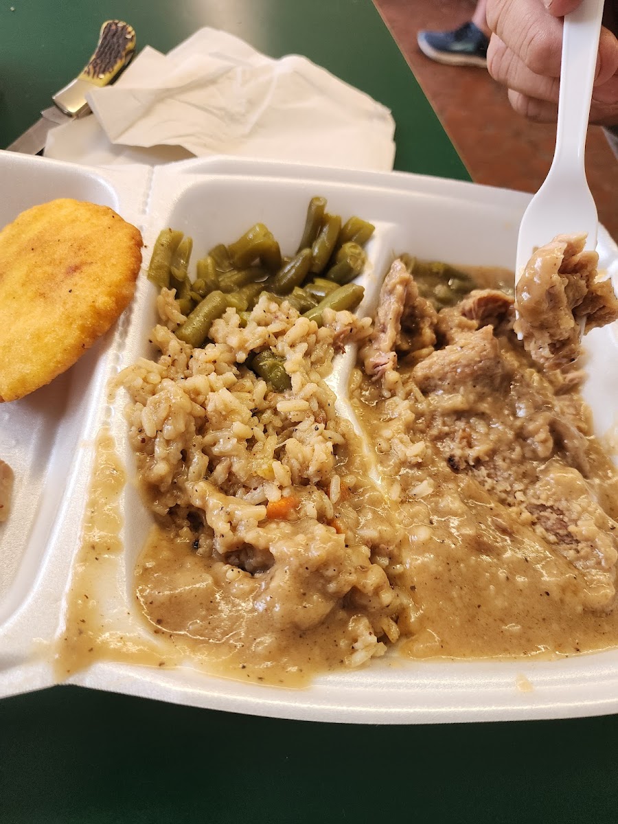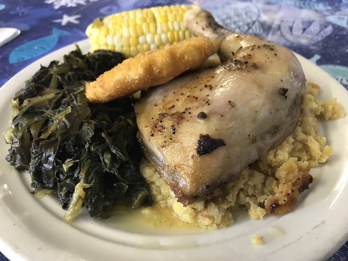 As good as it gets! Excellent smothered pork chops, fried chicken and baked chicken...butternut squash cabbage, rice, green beans all on point! Oh yeah, and a corn cake = yummy!